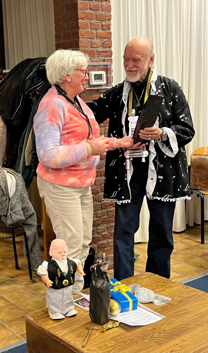 Tal van mensen haddden creatieve kadootjes bedacht. Zo had Ann een nieuw instrument ontwikkeld en een muziekjas voor Jan gemaakt. Had Gerry een tafelmodel van Jan Vossen gemaakt en Lei Coenen had bedacht het muzieksysteem van Jan te verwerken in een kunststuk met hele,halve, kwart en achtste noten (hazelnoten).